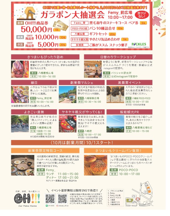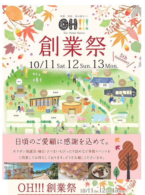 OH!!!飯能の5周年創業祭が10月11日、12日、13日に行われます。